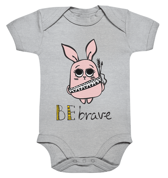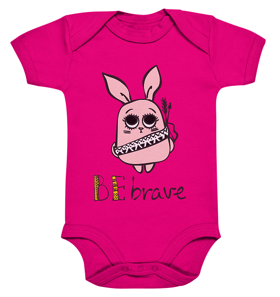 „Be brave“ Auf dem T-Shirt ist ein stolzer Hase zu sehen, der seinen Pfeilbogen mit sich trägt. Der Spruch „Be brave“ ermutigt uns, mutig unseren Weg zu gehen und uns von nichts und niemandem aufhalten zu lassen. Trag dieses Babystrampler mit Stolz und zeig der Welt, dass du bereit bist, jede Herausforderung anzunehmen!