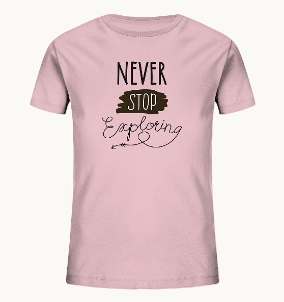 Immer schön neugierig bleiben – Never Stop Exploring, ein Spruch der Kinder und Kleinkinder daran erinner soll die Freude am Entdecken zu bewahren.
