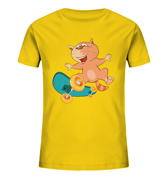Willkommen in der aufregenden Welt unserer Kinderbekleidung, wo jedes Stück eine Geschichte erzählt und Abenteuer zum Leben erweckt! Unser Kinder T-Shirt mit dem bezaubernden Design einer fröhlichen Katze, die auf einem Skateboard unterwegs ist, ist mehr als nur ein Kleidungsstück – es ist eine Einladung zum Spaß und zur Entdeckung.